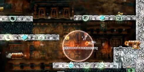 在任何时候按下 Shift 键,游戏的时间就会逆转,“undo”之前的所有动作。即使你死了,都是可以复活的。死去的小怪物们也会复活。可是就算这样,有些拼图还是很难拿到。 值得一提的是,时间逆转的时候,画面是流畅无缺损的,连爆炸场面都会“收缩”。更令人赞叹的是,游戏的背景音乐也会同步逆转。如果在时间逆转的时候按“上”,“下”键,就可以调整时间“快退”和“快进”的速度。当然,此时的场景就像录像机在快退或者快进。