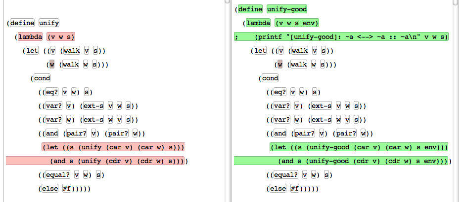不管你在任何位置剪切了一段代码到另外一个地方,ydiff 都能准确的探测到这个动作。比如在上面的代码里面,你也许发现了函数 unify