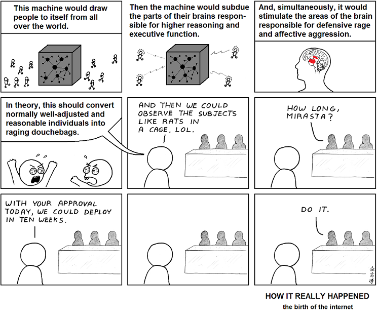 版权声明有人来信告诉我,有些人把我最近的一些文章贴到了 CSDN,引起很多人评论,其中 90% 的人都是骂我的,所以建议我以后还是多发点可以提高大家“水平”的东西,不要发“纯吐槽”的文章。我收到这样的邮件已经不是第一次了,我并不欣赏这类邮件。 首先必须指出的是,我讨厌“吐槽”,“黑”,“喷”,“给力”这类词汇。我认为这是对汉语的污染和中国文化没落的表现。以至于任何使用这些词汇的人会立即招致我的反感,被作为没文化的人对待。另外我批评那些现象其实是为了给许多正在经受同样经历的人一些鼓励。就算我经历过它们,也过去很久了,现在跟我一点关系都没有。要是没有一点为民除害的侠义心肠,我干嘛要说那些。另外我很久不上 CSDN,各种 BBS 以及其它论坛了,也绝不会把文章贴到那些地方,所以这笔账你们应该跟转帖文章的好事者去算。博客不是用来为别人服务的,博客 = blog = web log,就是用来记录自己想法的,是给有同样价值观的人看的。在自己的博客想写什么完全是我的自由,没有人有资格要求我写什么或者不写什么。没有人请你们来这里受气,网上可以找气受的地方多的去了。自己要来这里看又不高兴,那就只能怪有些人自虐了。那些不喜欢我又 follow 我微博的人,就只能叫做心理变态了。 还有一些人就是脑子里逻辑秀逗的那种。比如,我批评了某个技术,他就说“你说这个不好,那个也不好,你让我用什么!”我还从来不知道我的话有如此威力,可以把有些人逼上绝路。谁让你听我的话了?我说什么是我的自由,你用什么当然完全是你的自由。而且我是站在很高的位置说这些话的,一个普通程序员恐怕很多时候得受制于所处的环境。另外一些人喜欢说我是“理想主义”,可是他们没有看到,我说出来的“理想”,全都是我经过试验,知道有把握实现的东西。这种人跟我以前的几个老板一样缺乏安全感和想象力,可是我每一次都做出他们认为不可能的东西。大部分人的知识是如此的脆弱,不堪一击,因为他们是靠死记硬背学会的。而他们对那些东西是如此的执迷不悟,以为拿出一些唬人的名词就可以吓到我。我的知识是很不一样的,几乎都是自己琢磨出来的,所以我不但知道它们是什么,我还知道它们是怎么想出来的,所以我经常能看到其他人(包括权威在内)都看不到的东西。这貌似跟某些人很像呢?你猜对了,是 Richard Feynman 和 John Nash。由于受到他们的启发,我跟他们有非常类似的特征,但可惜的是跟 Feynman 不同,我不想把这些推导的过程告诉别人,我懒得跟人证明我的说法。我只是像先知一样把结论说出来,不信的人自己去碰几次壁就知道了。 实际上,我并不认为网上的评论来自人类,就像下面这幅图里画的,它们其实只是来自一些老鼠一样的生物,所以我一点都不在意的。这就是我为什么不开放评论的原因,并不是因为胆小,而是因为我比较重视卫生。你看 Donald Knuth 的文章开评论吗?他连 email 都不收,都是他的秘书有选择的打印出来给他看。他是怕你们骂他吗?他只是没空跟你们说话。 不过鉴于如此,我确实没有必要公开分享什么东西了。90% 骂我,说明只有不到 10% 还值得我为他们写点什么,我也受够了很多人在微博上阴阳怪气的,所以现在发布一个正式的,邪恶的,类似 Unix 当年作法的《版权声明》: 本网站的文章,不管是赞扬,批评,还是技术性的探讨,都是具有很大价值的内容。虽然一直没有版权许可声明,但是根据国际版权法的缺省值,这里曾经发布过的所有文章内容都属于版权所有(All rights reserved)。除了个别经过许可,任何其他个人和网站都不得拷贝或者转载。由于最近发现大量的非法转载现象,以及很多获取这些非法内容的人的不知好歹的评论,现将所有内容永久关闭,以免知识产权受到更加严重的侵害。 最近还察觉到一些业界人物对本人英文网站内容进行剽窃而不加引用的现象,所以yinwang0.wordpress.com 和相关的 www.slideshare.net/yinwang0 也做出了相应措施,关闭了高知识产权部分的内容。另外,微博,twitter,以及知乎上对一些问题的答案也一并被删除。 届时本网站的律师将向所有非法转帖本站文章的站点发出停止侵害,要求赔偿的通知。赔偿金额根据严重程度从一千美元到上百万美元不等。另外还将对学术界的论文发表做出监控,防止剽窃而不引用现象的发生。对的,你必须 cite 我的 blog,如果你写论文之前看过它的相关内容。 之前作出的任何表扬或者批评,以及推荐的任何东西,从今天开始全部作废。如果因此误入歧途,走了弯路,本人概不负责。注意这并不等于妥协或者收回曾经的批评,只不过这些批评从此不再免费。批评是一种非常有价值的东西,所以从今以后我不会再免费批评任何程序语言和技术。有人为它们浪费时间浪费钱,根本不关我什么事。所有要求对某种程序语言,操作系统,数据库或者其它新技术做出评价和指导的个人和单位,都必须支付相应的费用。 另外,PySonar,RubySonar 和其它一些代码的版权从今天开始由 BSD 改为 GPLv3,从而禁止被用于不开源的软件。这一方面是由于它们的极高知识含量和创新程度,极少的依赖关系和不可匹敌的地位,我不需要利用 BSD 这样相当于拱手送人的版权来让它们“流行”。另一方面由于我完全独立的做出了这些东西,没有其他人做出过重要的贡献,如果有人拿去盈利又不想开源,当然应该支