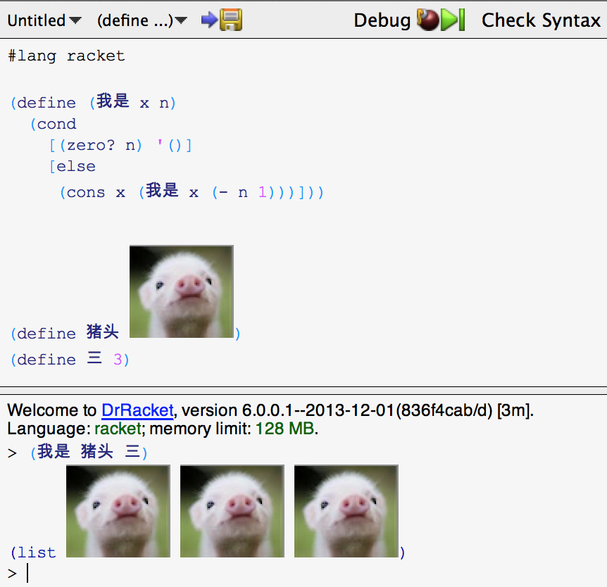很多人都以为我最爱的程序是那“传说中的王垠40行代码”。那段代码固然是天神衣袖般的优雅,然而它却没有地球的气息和灵魂。其实我最爱的程序是下面这段 Racket 代码。有一天,空中出现一道亮光,隐约的听到一些哼哼声,然后我飞速的写下了它。后来发现,这是数学,艺术以及中西方文化的完美结合,绝版的艺术品。