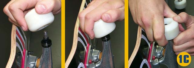 当你安装好所有部件后就可以开始滑了。你可能会注意到一个全新的滑板刚刚四轮着地时,只有三个轮子挨着地面,这是正常现象。当你滑了一段时间之后,由于桥轴衬的弹性,四个轮子都可以正常着地了。