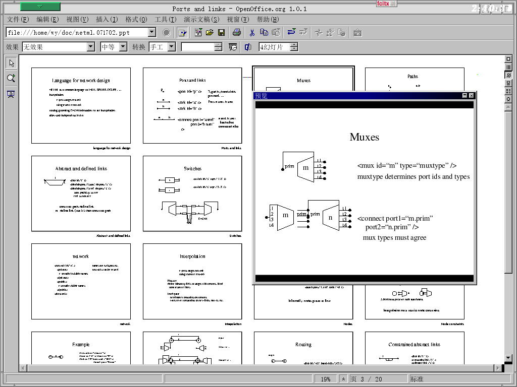 - 编辑复杂的幻灯片。可以用 OpenOffice 的 impress, 它可以正