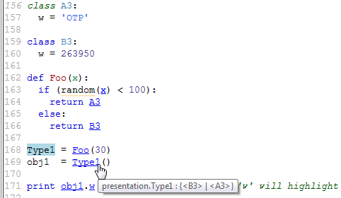 - Handling of Python's dynamism. Static analysis for Python is hard because it has many dynamic features. They help make programs concise and flexible, but they also make automated reasoning about Python programs hard. Some of these features can be reasonably handled but some others not. For code that are undecidable, PySonar attempts to report all known possibilities. For example, it can infer union types which contains all possible types it can possibly have: